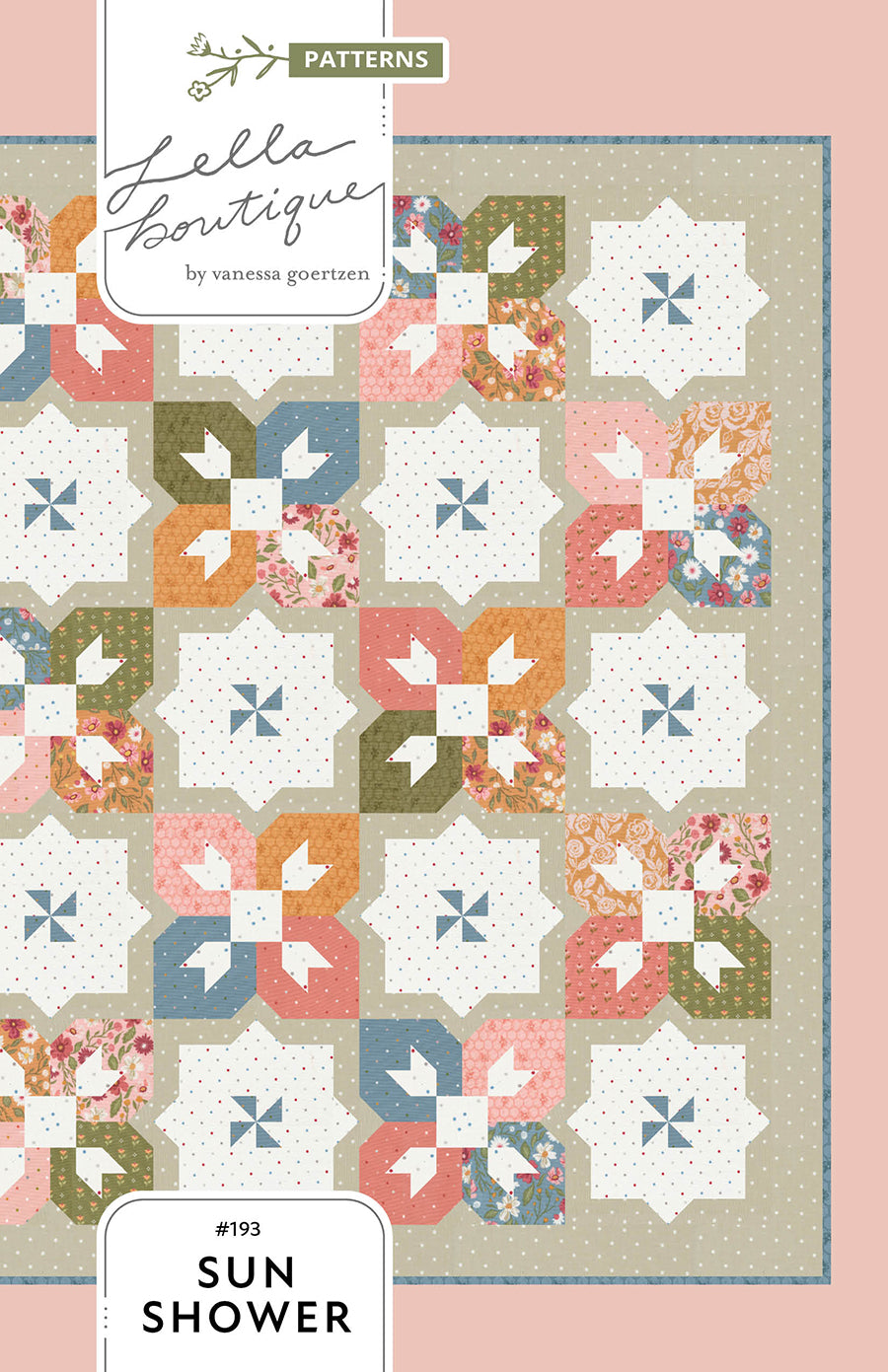 Sun Shower tile quilt by Lella Boutique. Fat eighth quilt. Fat quarter quilt. Fabric is Wild Honey (and Magic Dot) by Lella Boutique for Moda Fabrics. Download the PDF here!